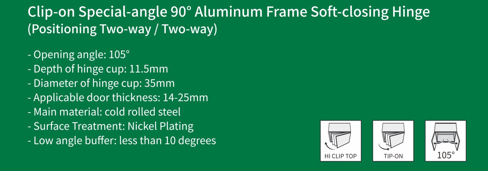 Bản lề đóng êm Khung nhôm góc đặc biệt 90° (Định vị hai chiều / Hai chiều)