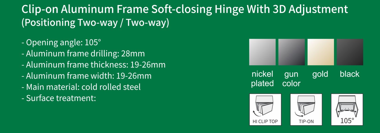 Bản lề đóng êm khung nhôm kẹp với chức năng điều chỉnh 3D (Định vị hai chiều / Hai chiều)